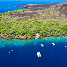 Join us aboard one of our 26 – 36’ vessels for an amazing snorkeling tour to Kealakekua Bay and Captain Cook monument. Be amazed by the beautiful cobalt blue and turquoise bay waters and the palm fringed shoreline. Chat with the captain about the day’s adventures then sit back and enjoy the dramatic beauty of the Kona coast, cliffs, lava tubes and sea caves. Enroute to historic Kealakekua Bay and the Captain Cook monument, enjoy Hawaiian spinner dolphins, flying fish, and humpback whales (seasonal).